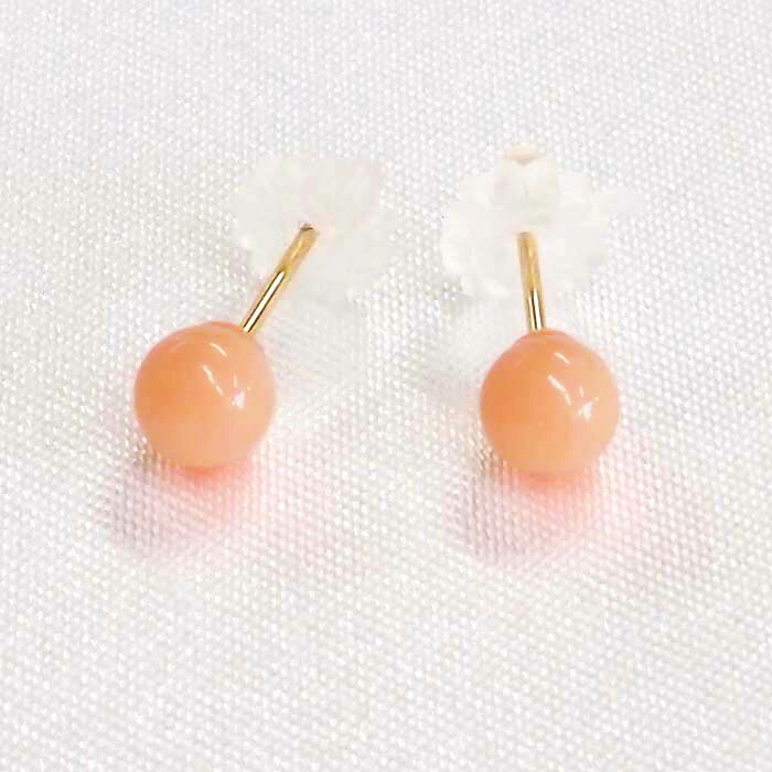 K18 ピンク 珊瑚 ピアス (丸玉 4mm) ピンクサンゴ ボールピアス ピンク コーラル 珊瑚 サンゴ 18金 18K 【送料込み おしゃれ 可愛い シンプル レディース】