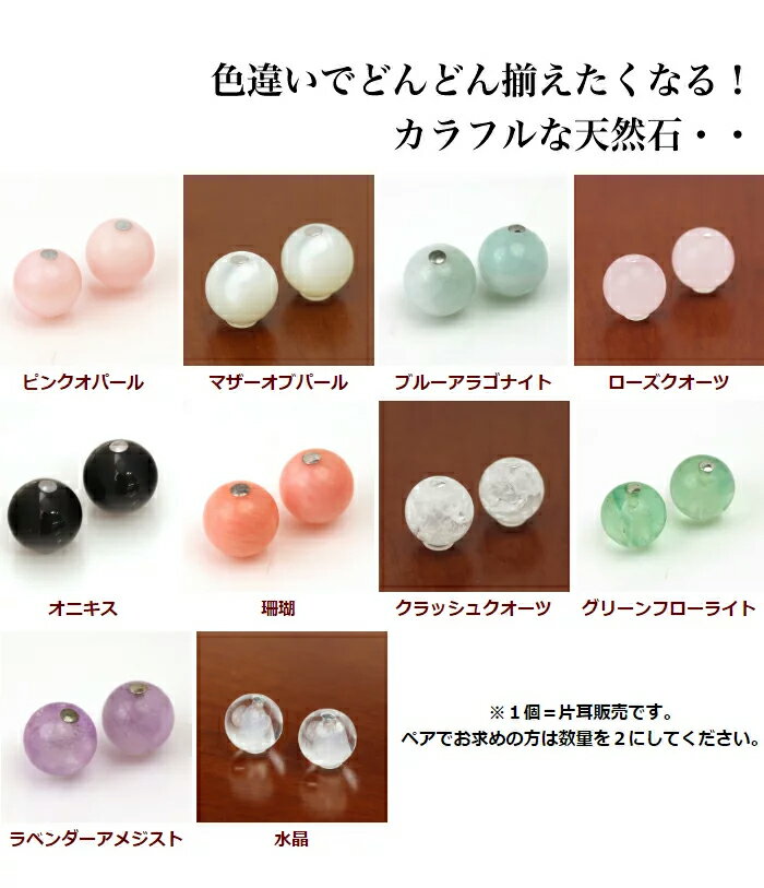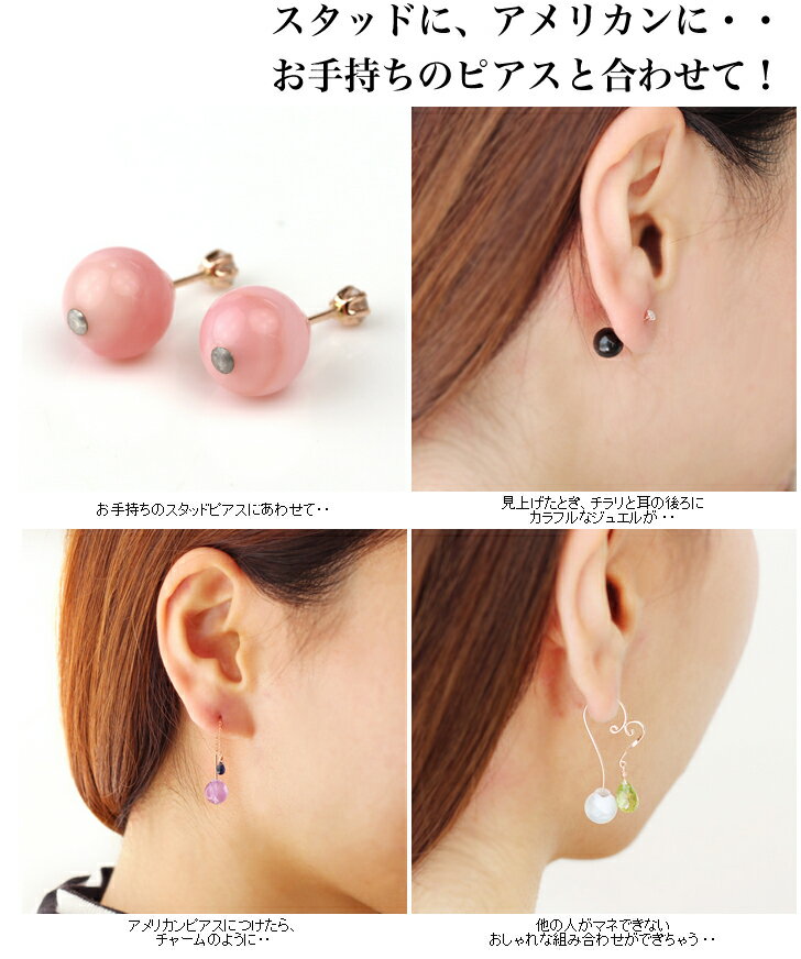 ジュエルキャッチで、どこから見ても”劇的美人”・・! 10種類の天然石ピアスキャッチ・ジュエルキャッチ ピンクオパール マザーオブパール ブルーアラゴナイト ローズクオーツ オニキス 珊瑚 クラッシュクオーツ グリーンフローライト ※1個=片耳販売です。