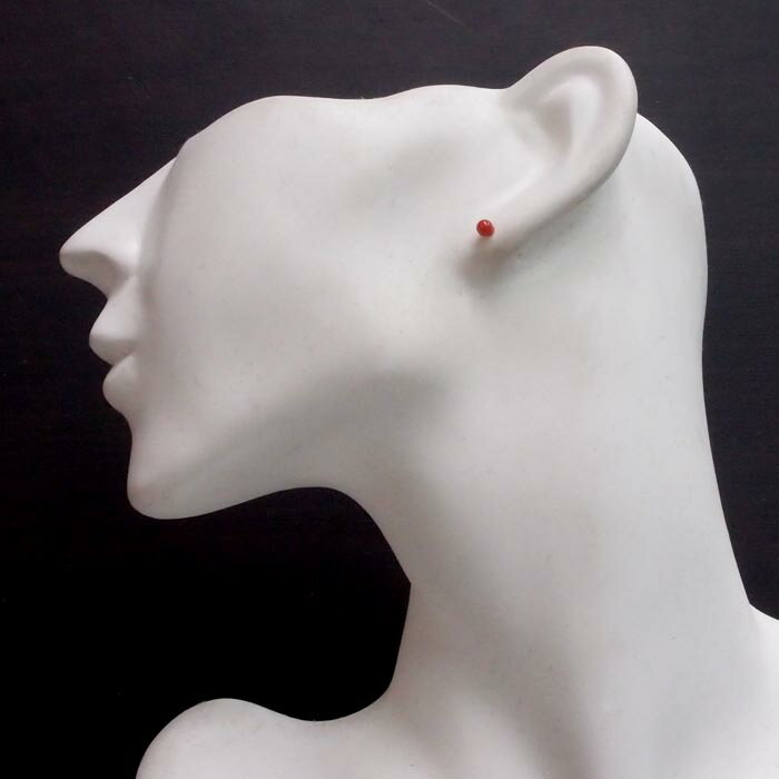 各種まとめてどうぞ! 素 材 : K18ゴールド 中 石 : 赤サンゴ(ねり染め) サイズ : 石の直径は約3ミリ ポスト : 太さ約0.62ミリ、長さ約9ミリ とてもオシャレで普段使いにも最適です。