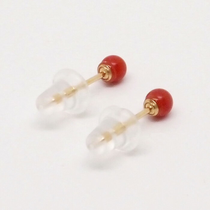 18K ピアス 赤珊瑚 (丸玉 3mm) 18金 K18 小ぶり 小さめ 小さい サイズ 赤 珊瑚 レッド 珊瑚 コーラル サンゴ ボールピアス 【送料込み おしゃれ 可愛い シンプル 仕事 レディース】