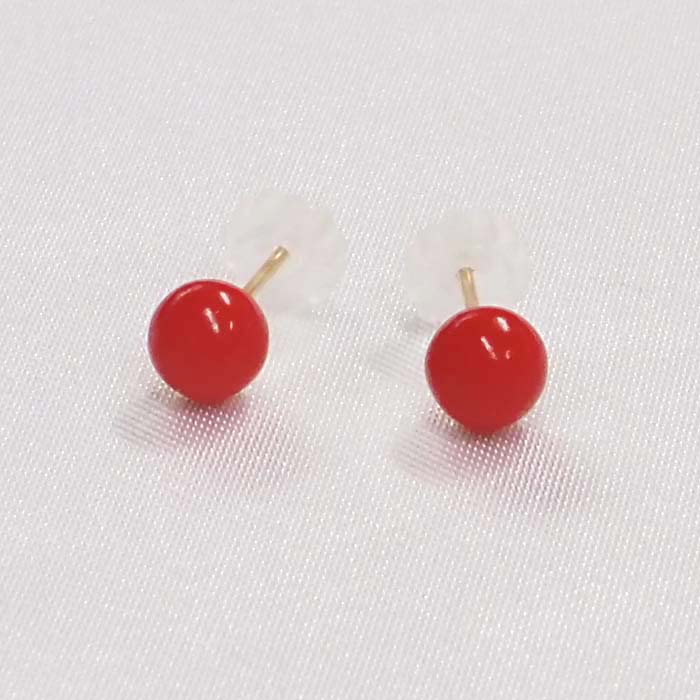 K18 赤珊瑚 ピアス (丸玉5mm) 18金 18K 赤 レッド 珊瑚 コーラル サンゴ 安心のゴールド台 【送料込み おしゃれ 可愛い シンプル レディース】