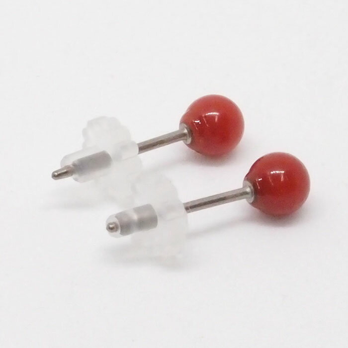 チタン 赤珊瑚 ピアス (丸玉 4mm) 金属アレルギー 安心 チタンポスト 赤 レッド コーラル サンゴ シンプル 【 可愛い シンプル ポイント消化 送料込み プチプラ 買いまわり 】 天然石丸玉ピアス