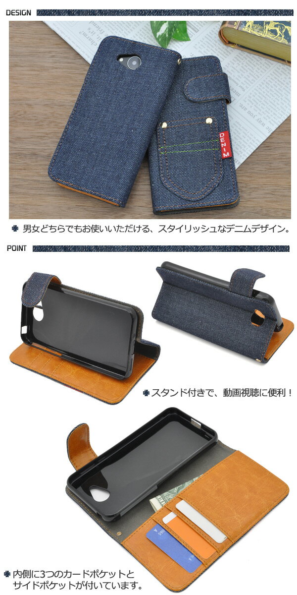 メール便送料無料【507SH Android one/softbank AQUOS ea用デニムデザインスタンドケースポーチ 】シンプル ジーンズ 定番 アンドロイドワン ワイモバイル Y!mobile スマホカバー スマホケース 手帳型 横開き 二つ折り SHARP シャープ インディゴ ネイビー