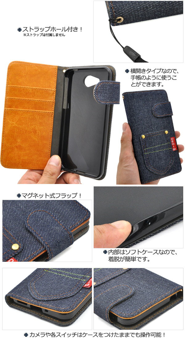 メール便送料無料【arrows Fit F-01H/arrows M02/arrows RM02用デニムデザインスタンドケースポーチ】ストラップホール 横開き 手帳型 アローズ フィット docomo ドコモ 楽天モバイル SIMフリー シムフリー f01h FUJITSU 富士通 スマホカバースマホケース