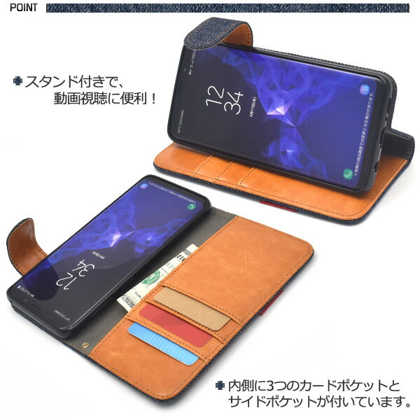 メール便送料無料【Galaxy S9 SC-02K/SCV38用ポケットデニムデザイン手帳型ケース】 ギャラクシー エス ナイン docomo ドコモ Samsung サムスン SC 02K sc02k au エーユー スマホカバー スマホケース 手帳型 二つ折り 横開き かわいい シンプル ジーンズ ジーパン風