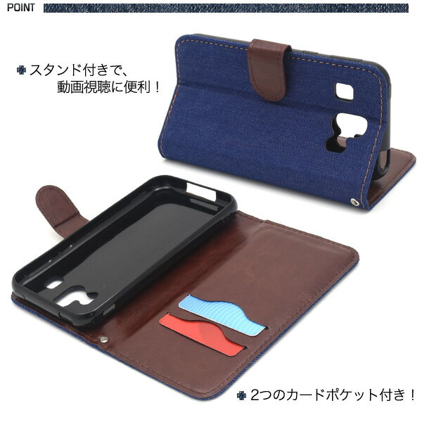 メール便送料無料【シンプルスマホ4 (2018年 夏モデル)用デニムデザイン手帳型ケース 】softbank ソフトバンク シャープ スマホカバー スマホケース シンプル ストラップ穴 ストラップホール 背面スタンド 手帳型 ジーンズ